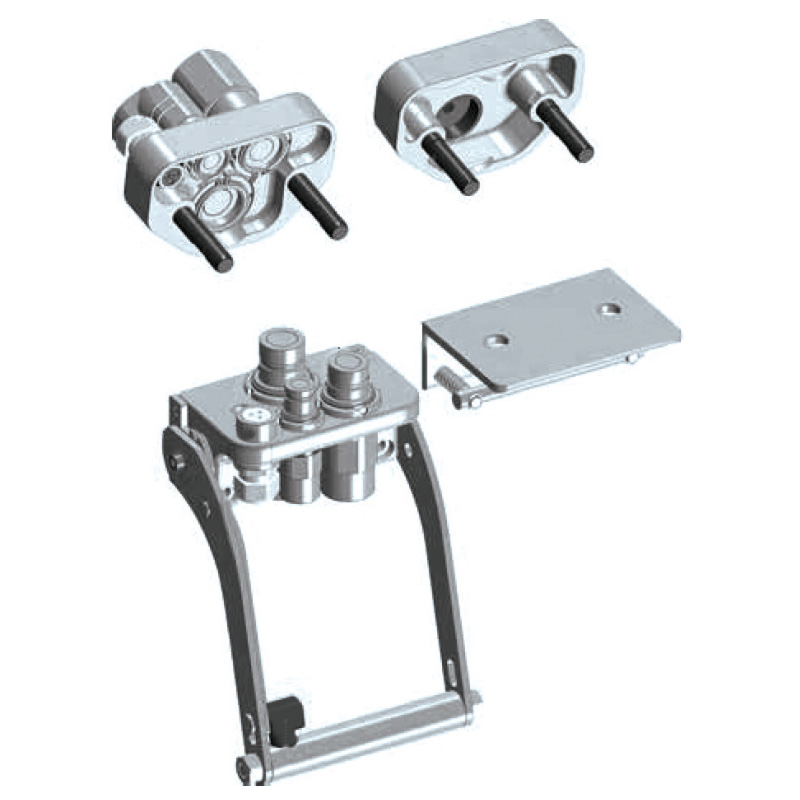 Series of multiple couplings that allow simultaneous connection and disconnection of various hydraulic, electrical and pneumatic lines without effort.